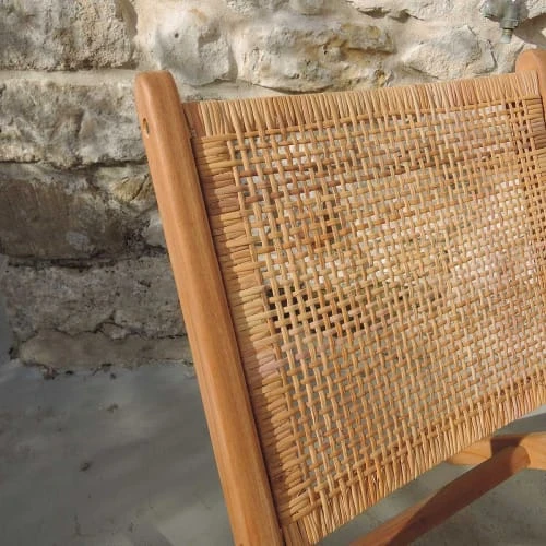 matière : Encadrement en teck et assise en rotin tressé