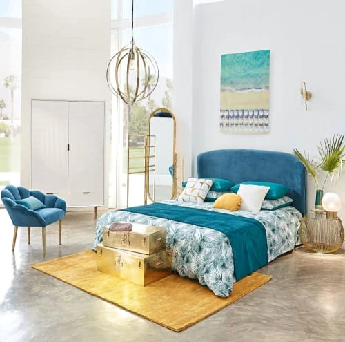 Inspiré du style vintage, le fauteuil bleu canard HOMARID fera sensation au salon. On aime la teinte bleu canard, toujours aussi tendance, les pieds obliques en métal cuivré, et les surpiqûres du dossier qui créent la forme d’un coquillage. Cette forme aux courbes généreuses offrira profondeur et confort au quotidien. Résultat : une pure merveille, dans l’esprit des fauteuils cocktail des années fifties. Et que dire du doux revêtement en velours, qui invite à la détente et au bien-être. En dénichant ce fauteuil coquillage, c’est votre canapé qui va être jaloux !