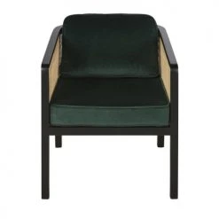Maisons Du Monde Fauteuils Fauteuil En Velours Vert Cannage En Rotin Et Bois De Bouleau Noir